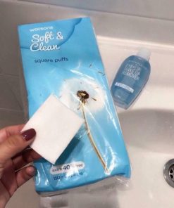 → Bông tẩy trang Watsons Soft & Clean Square Puffs 210pcs được dùng khi cần tẩy trang hoặc dưỡng da với nước hoa hồng/cân bằng.