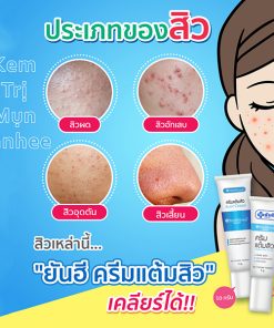 - Kem trị mụn Acne Cream Yanhee mịn màng làn da có tác dụng kháng khuẩn tự nhiên, thấm sâu vào da, làm khô mụn trứng cá, mụn nhọt, đánh bay mụn đầu đen, đầu trắng và tất cả các loại mụn bọc, mụn mủ…
