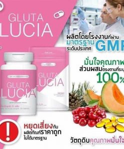 - Được nhập khẩu từ Thụy Sĩ. Gluta Lucia có chứa chất chống oxy hoá cao, điều này ngăn cản sự hình thành melanin nên da sẽ trắng và sáng hơn một cách tự nhiên.